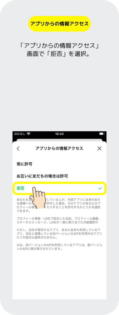 ホーム>設定(右上の歯車のマーク)>プライバシー管理>「アプリからの情報アクセス」>拒否を選択