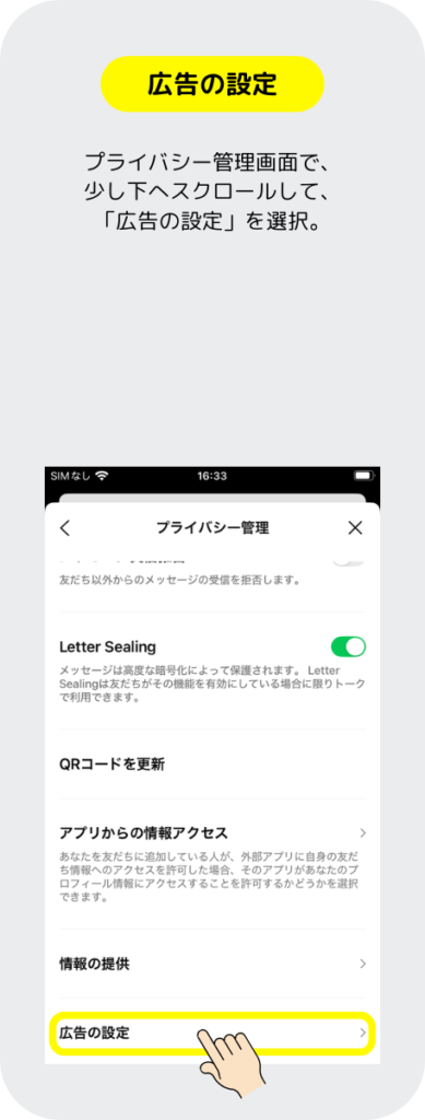 LINE内部識別子を利用した追跡型広告の受信をOFF