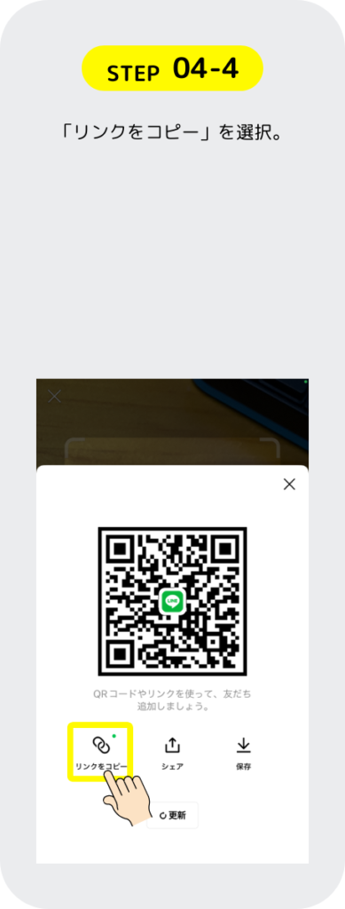 コピーしたリンクは、SMS、もしくは、メールで友だちに送信して、友だち追加をしてもらうのだ。