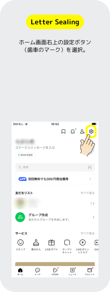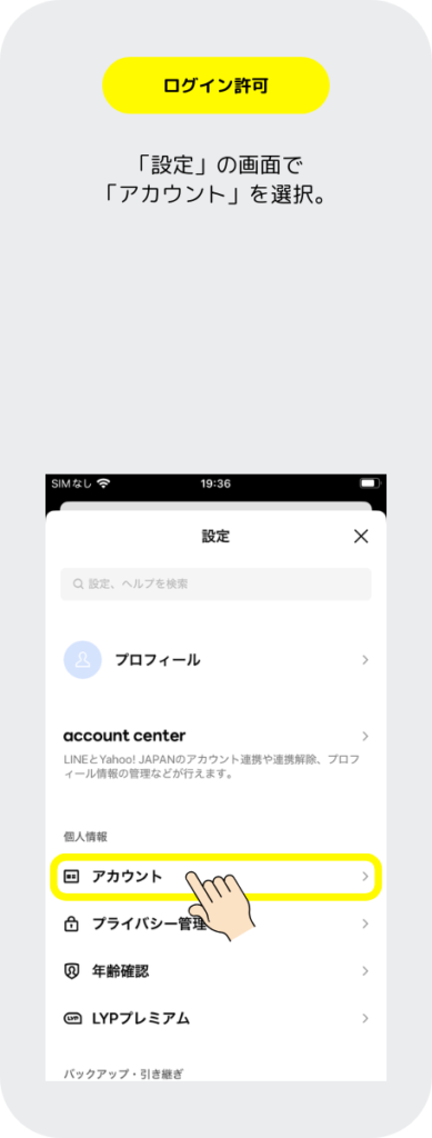 ホーム>設定(右上の歯車のマーク)>アカウント