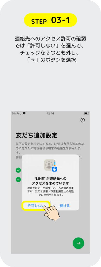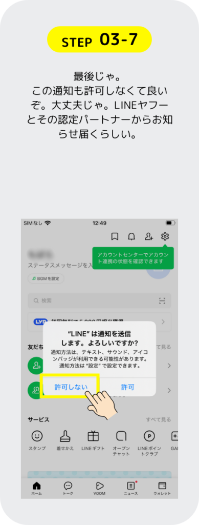 アカウント登録に続けてセキュリティに関する設定項目について質問されるぞ。全て「許可しない」だぞ!