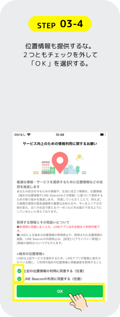 LINEアプリのダウンロードが完了したら、デスクトップにLINEアイコンがあるはずじゃ。早速アカウントを登録してみよう。アカウント登録手順の途中からは、セキュリティに関する設定が継続される。情報漏洩リスクを低減するためには基本的には全て許可しない方が良いぞ。後で使いたい機能が出てきたときに許可を設定すれば良い。「おすすめのセキュリティ設定」を参考にしてくれ。
