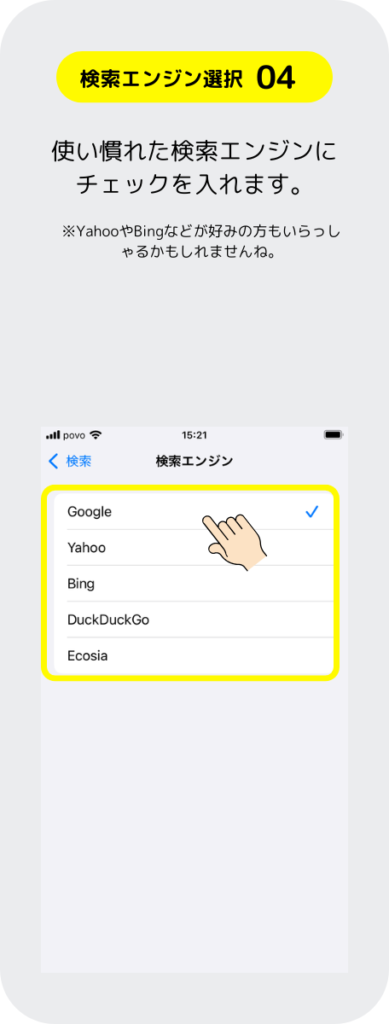 iPhoneで使う検索エンジンも、初期設定ではGoogleになっている。iPhoneユーザーも、どの検索エンジンを使うとかを意識することなくGoogle社の検索エンジンを使っているはずだ。参考までにiPhoneの検索エンジンを変更する手順を説明しておこう。