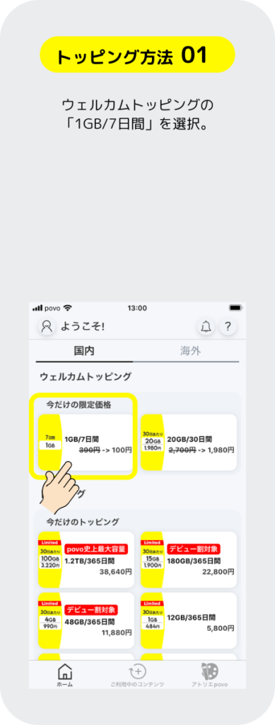 お試しで「1GB/7日間」をトッピングしてみるよ