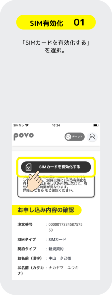 SIMカード開通手続き